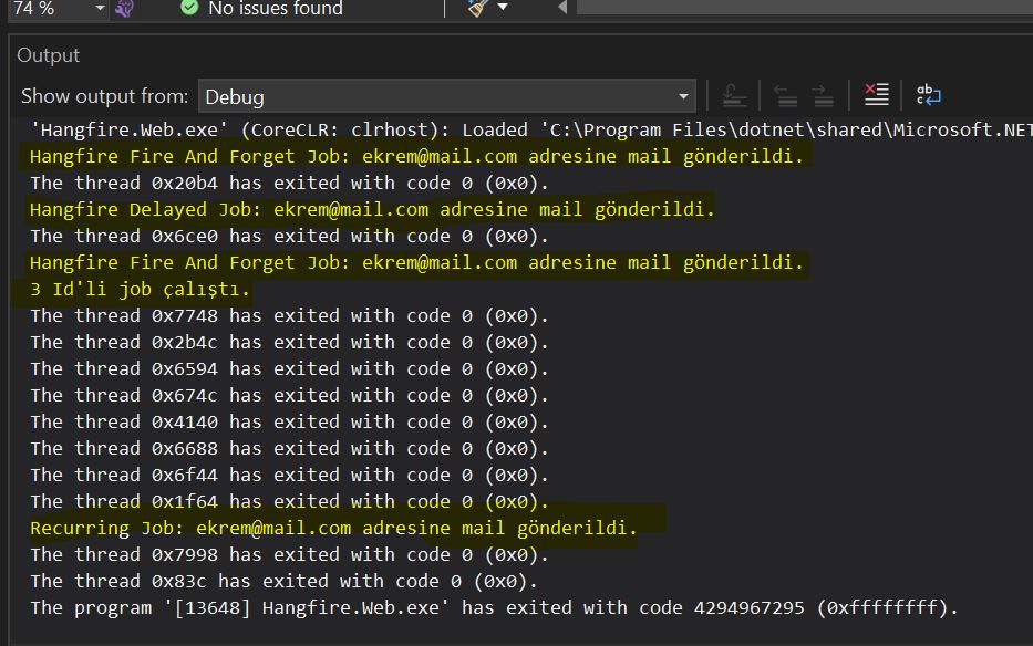 Bu makalede temel seviyede Hangfire'ı nasıl kullanırız onu anlatmaya çalıştım. Daha detaylı bilgi için bu adresi ziyaret edebilirsiniz. docs.hangfire.io