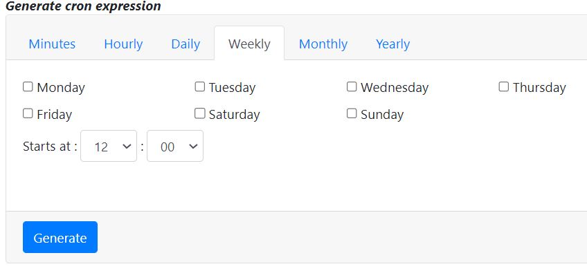 Sitenin dördüncü tabında job'ın haftanın hangi günleri çalışacağını söyleyeceğiniz cron'u üretiyorsunuz.