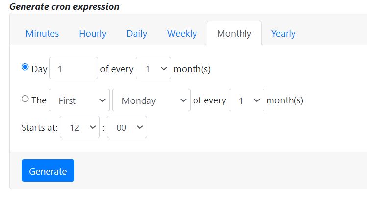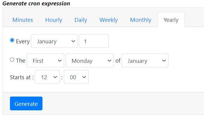 Sitenin beşinci tabında job'ın kaç ayda bir ayın hangi gün ve saatinde çalışacağını söyleyeceğiniz cron'u üretiyorsunuz.