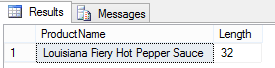 SELECT TOP 1 ProductName, LEN(ProductName) AS'Length' FROM Products ORDER BY LEN(ProductName) DESC