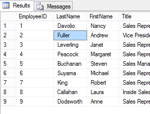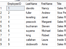 Yukarıdaki kodda Employess tablosundaki LastName alanını yine LastName ile güncelliyoruz ancak LastName'i UPPER() komutunun içine yazdığımız için alandaki tüm veriler büyük harfe dönüşecektir. Önce sorguyu çalıştırmadan önceki verileri görelim,