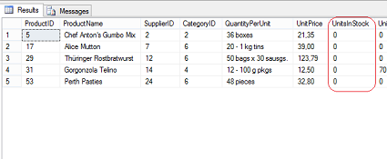 SELECT * FROM Products WHERE UnitsInStock = 0